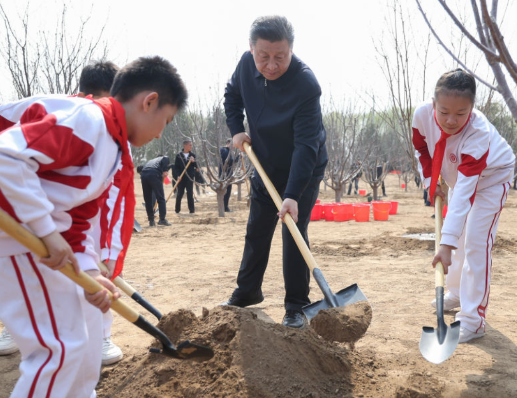 今年4月3日,习近平总书记扛着铁锹的身影,再次出现在首都义务植树活动的现场。