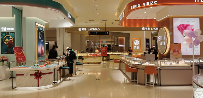 10月7日,消费者在北京一家商场的金店选购金饰。新华社记者任军 摄