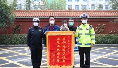 11月28日,新密的王先生专程来到新密市公安局交警大队,为新密交警许志磊送来一面印有“生命通道护航者 正气浩然好交警”的...