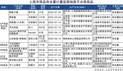 近日,上海市市场监管局对上海市水产制品、糖果制品、熟肉制品等开展定量包装商品净含量监督抽查。经检验,有11批次产品不合格...