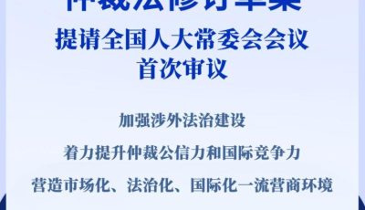 11月4日,《中华人民共和国仲裁法(修订草案)》提请十四届全国人大常委会第十二次会议首次审议。这是现行仲裁法自1995年...